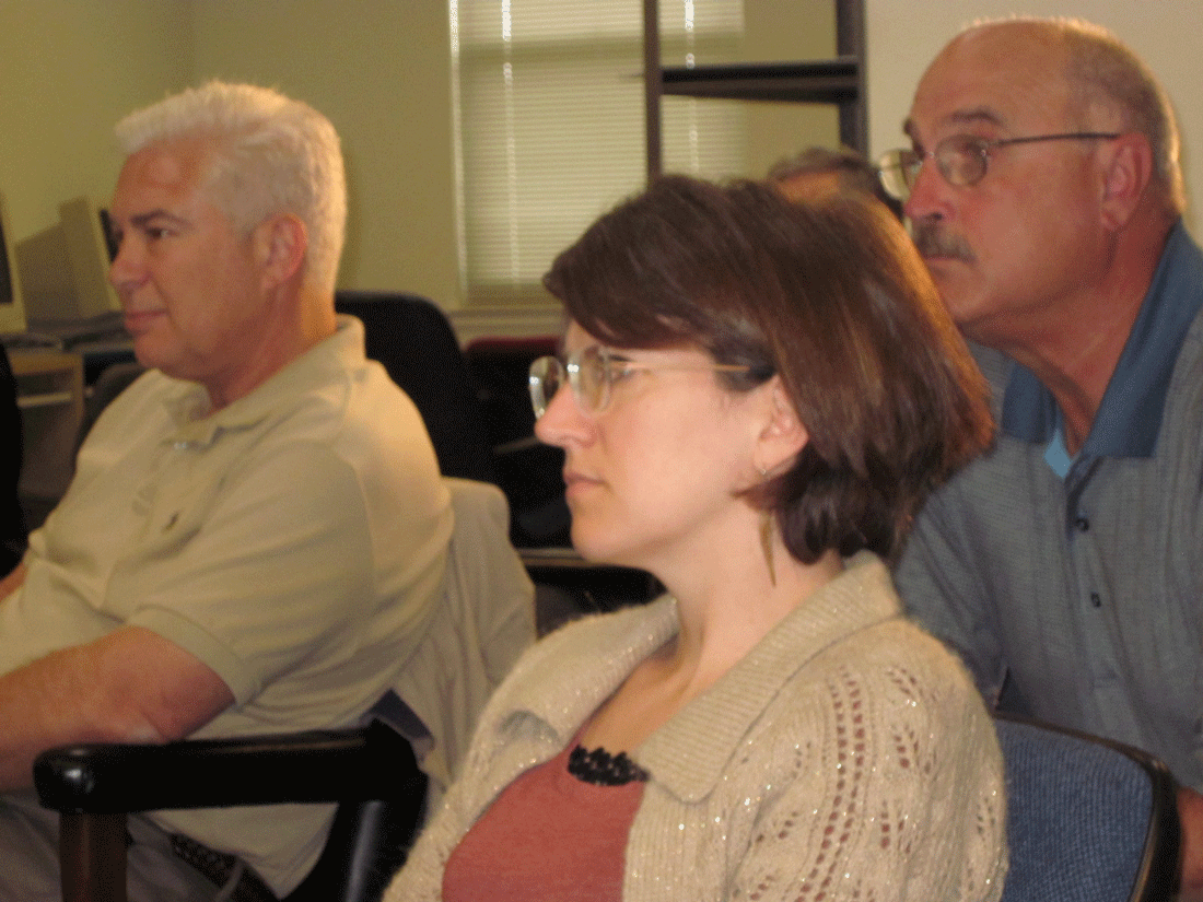 Chris Khan, Sonja Christionat Koehler and Alan Barich listen to Jo Marie Diamond.