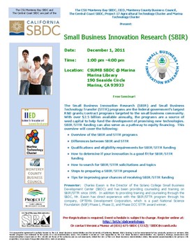 Copyright Barich Business Services 2012                Barich Business Services  831-462-1413  Project 17  is partially funded by a contract from the U.S. Small Business Administration (SBA). SBA’s funding should not be construed as an endorsement of any products, opinions, or services. All SBA-funded projects are extended to the public on a nondiscriminatory basis.