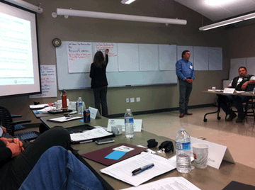 Dr. Susan Duggan of Smart World Center takes notes as participants create a "wish list" of solutions with Craig Hornung of John Deere Water.